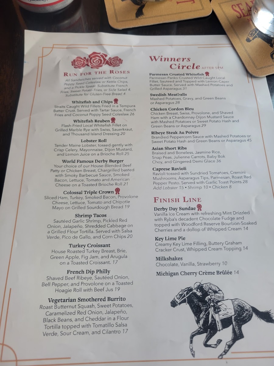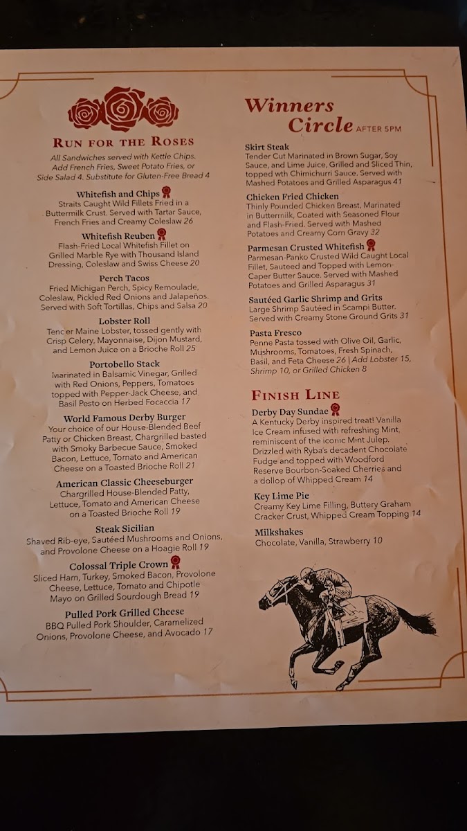 For the little ones, hearty options like chicken nuggets and macaroni & cheese ensure everyone is satisfied. The Winners Circle menu offers standout meals, such as the Parmesan Crusted Whitefish and the rich Chicken Cordon Bleu. Each dish bursts with flavor, crafted with care and local ingredients.